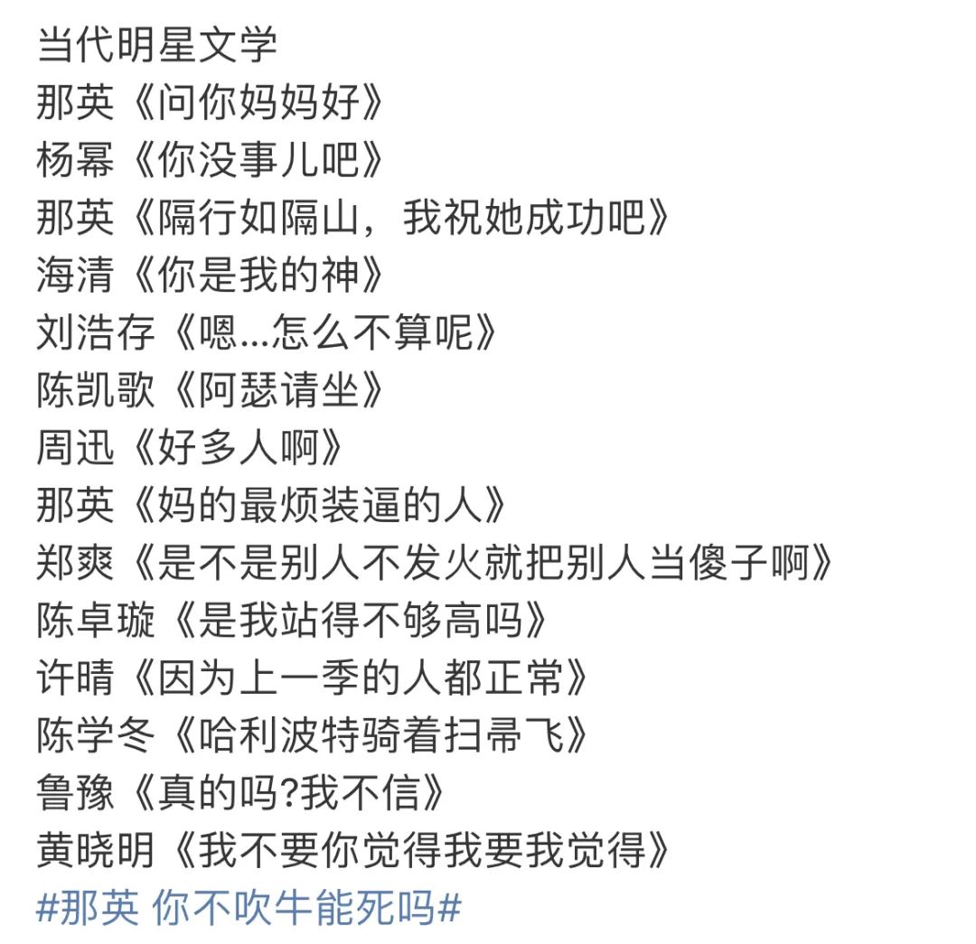 那英更是凭借真性情成了全网嘴替,每当调休、骂人、生气时都有一句那英名言可供使用。