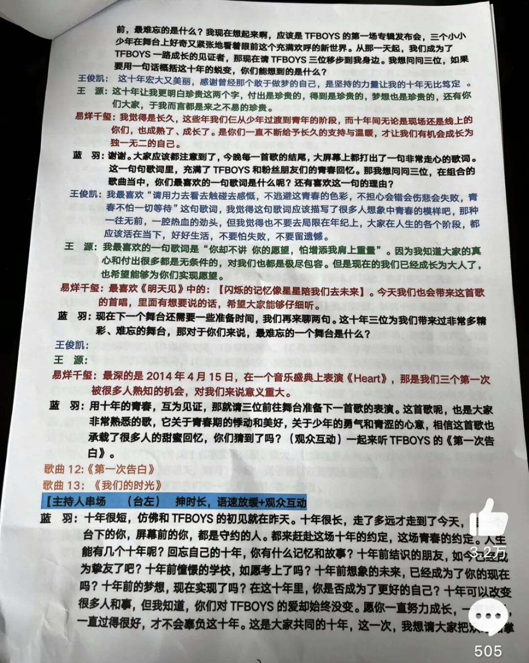 即便是从小被观众们看着长大的养成系,在演唱会上也是背好台词照本宣科。