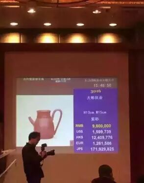当代紫砂工艺大师紫砂作品成交率高达95%以上。在紫砂拍卖专场现场竞拍人竞争激烈,屡出高价,一把大彬执壶以980万创本次拍卖会成交价之最!