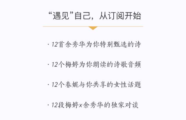 前100名订阅用户将获得余秀华老师签章诗集,以及梅婷、春妮女神亲笔签名的神秘礼物哦~