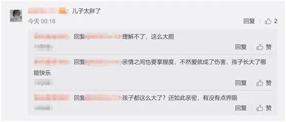 一些网友就在动态下表示道:孩子都这么大了?还如此亲密,有没有点界限!亲情之间也要掌握度,不然爱就成了伤害,孩子长大了哪能快乐。更有甚者直呼:真是理解不了,这么大胆的行为。