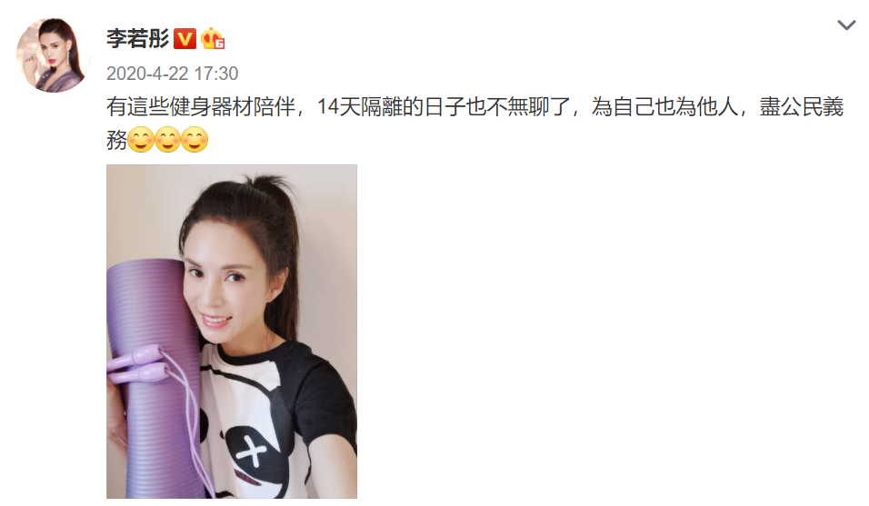 李若彤喜欢健身,经常会在网上分享自己健身后的体态。