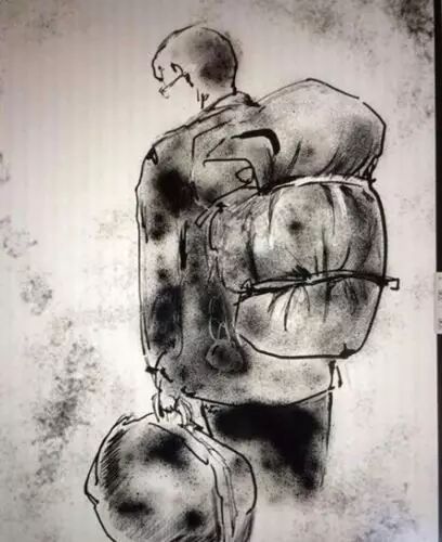 在一堆烂厂房里作画。