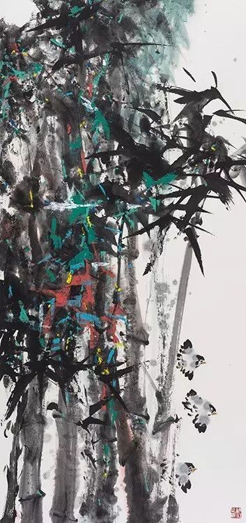 他的画作《虬松劲 罗衫湿》,