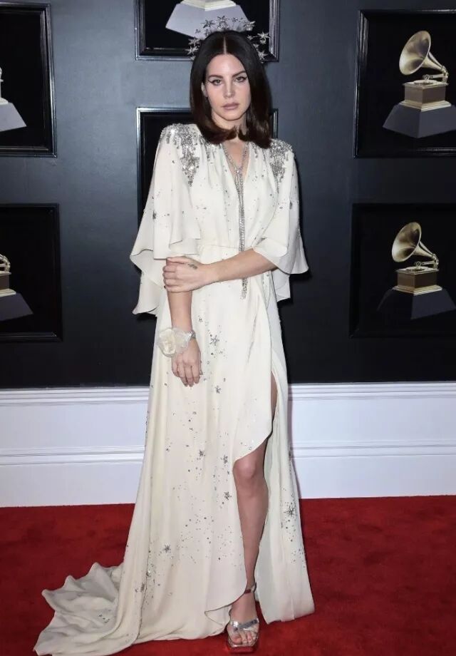 在当晚红毯上,打雷姐的look,与鳖女士是不相上下。Lana Del Rey身着Gucci定制礼服,配上星辰发饰与标志性的复古眼线,像是从油画中走出的女神,简直就是高冷仙子本仙了。
