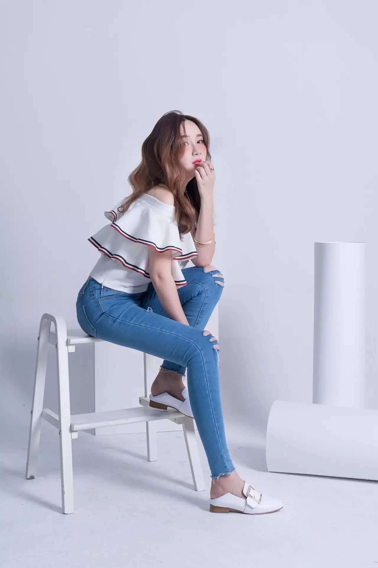 这样会显得人高腿长,大概像这样 ↓ ↓ ↓