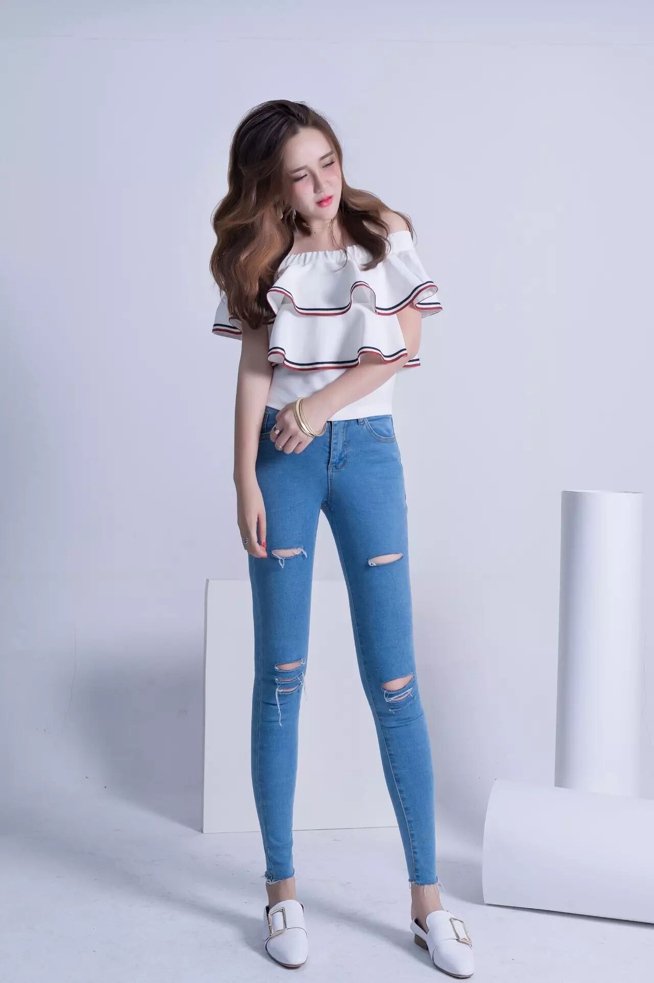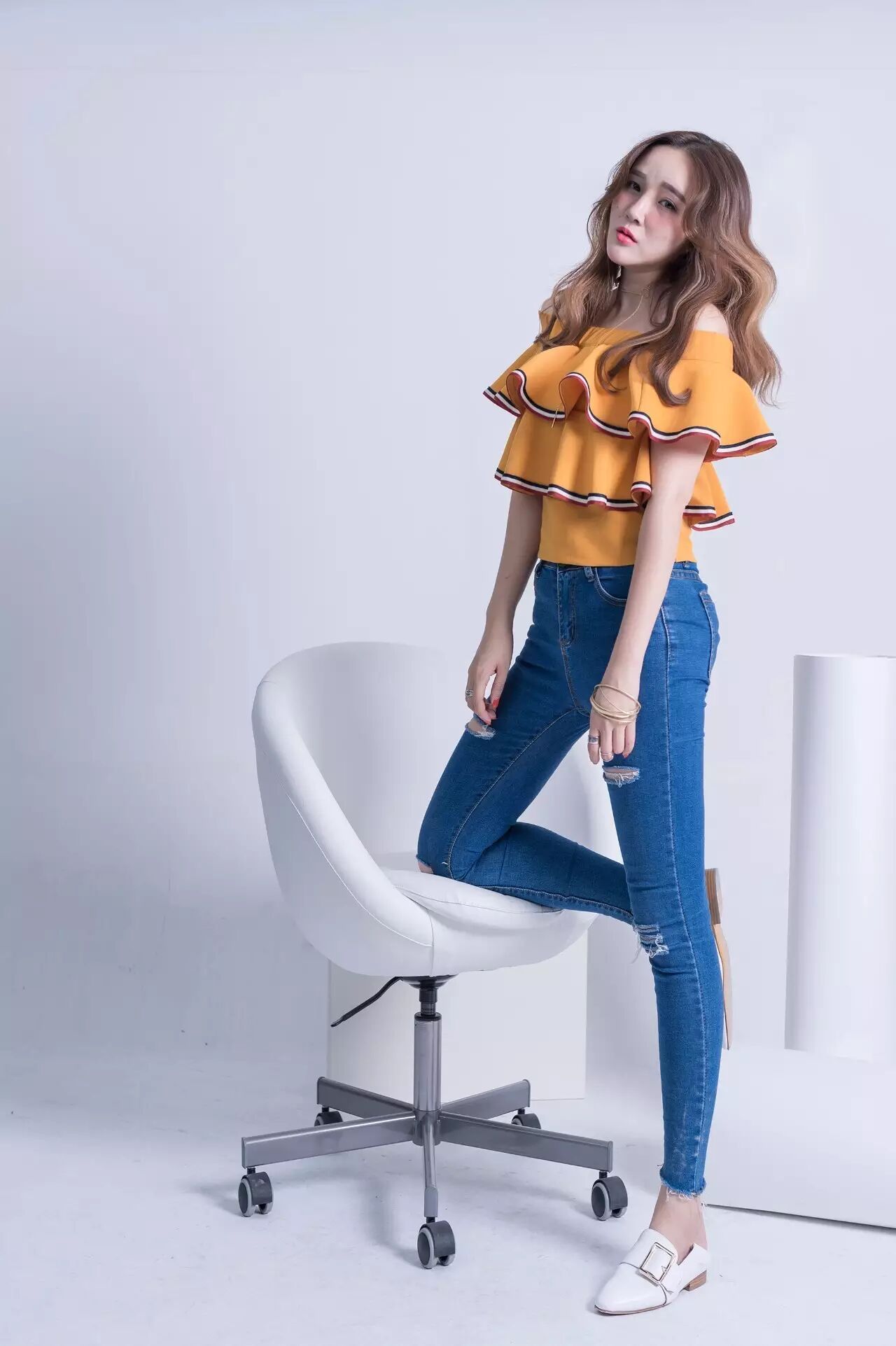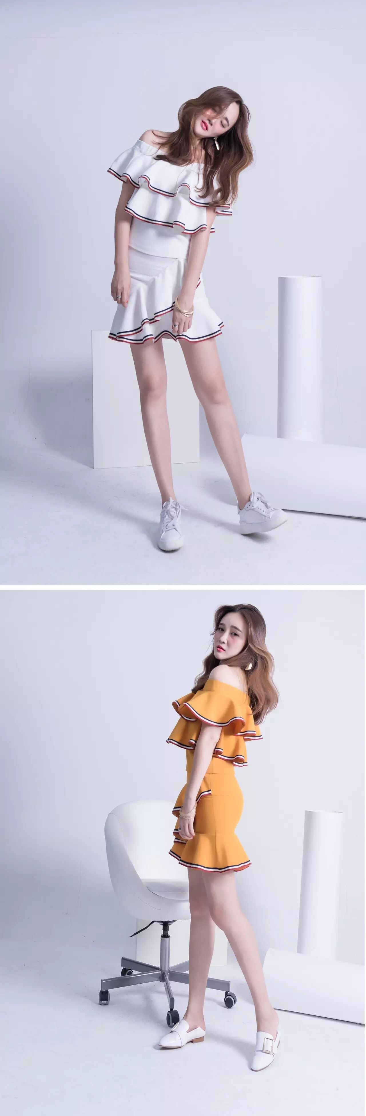 高腰荷叶边半身裙同样也有提高腰线的效果,