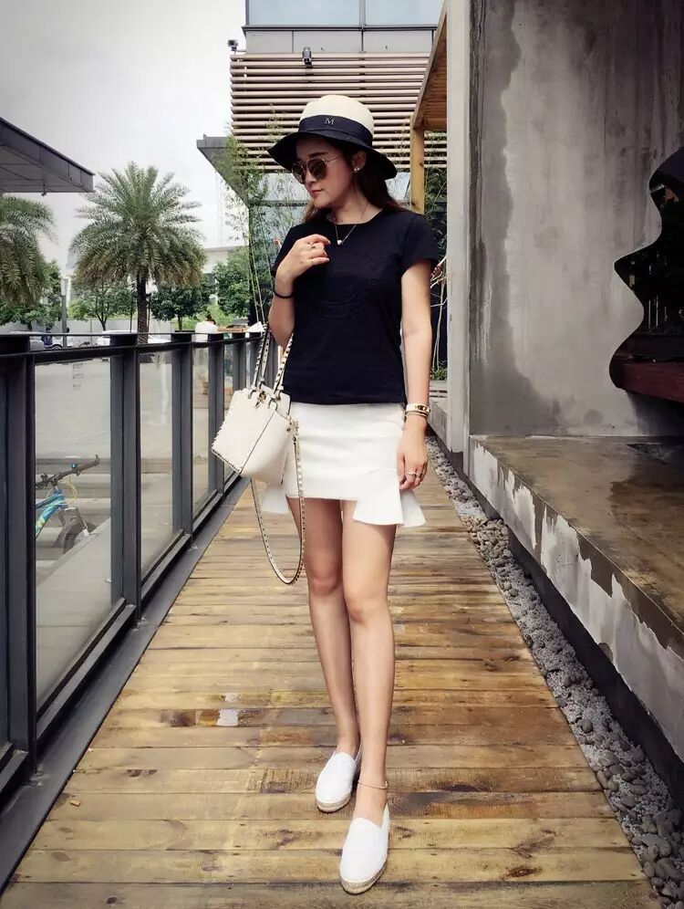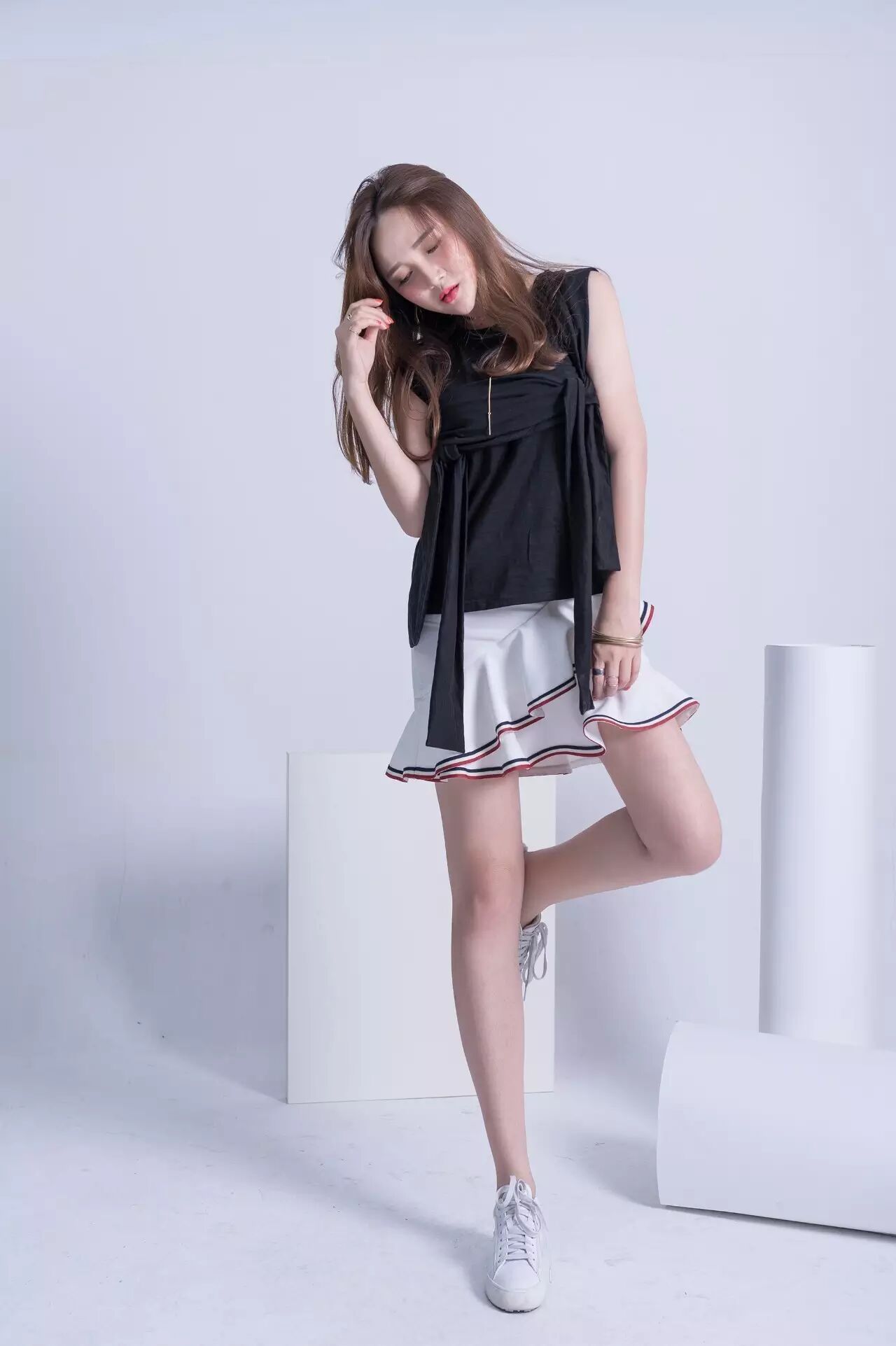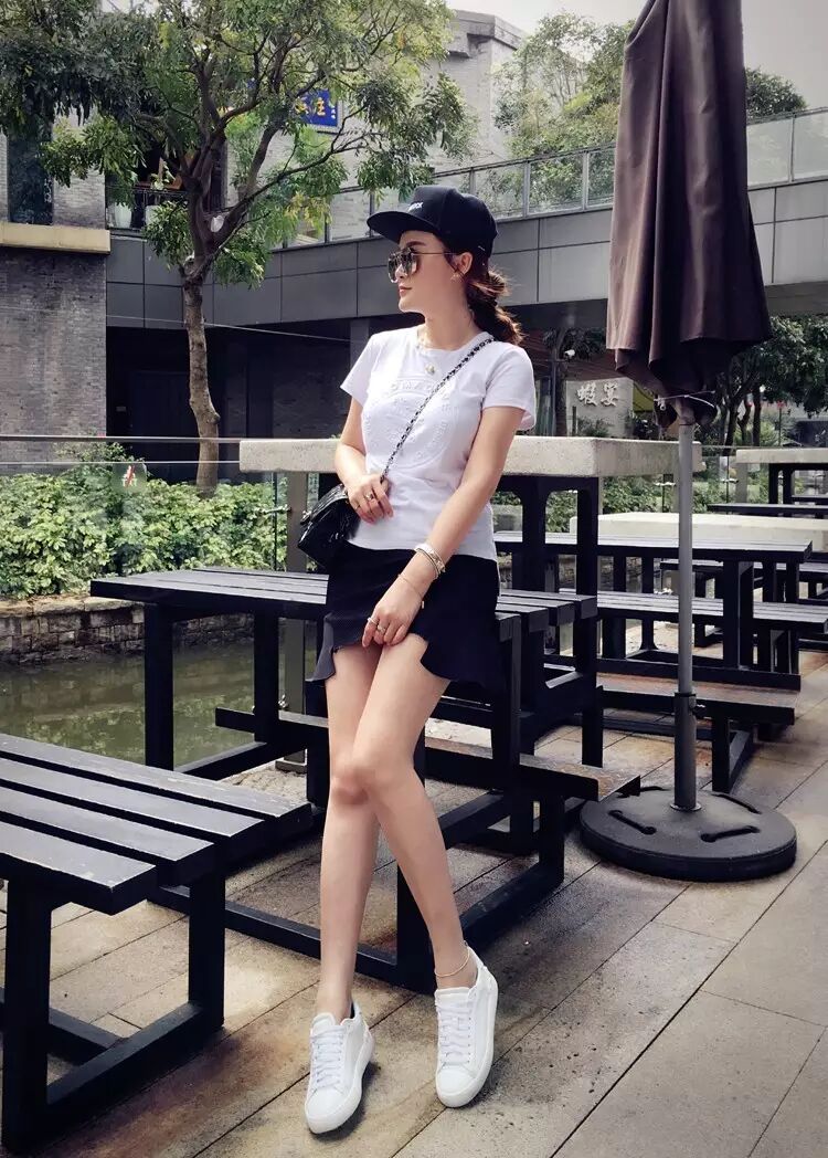 短裙也能让腿部看起来更长,黑色还有显瘦的效果,