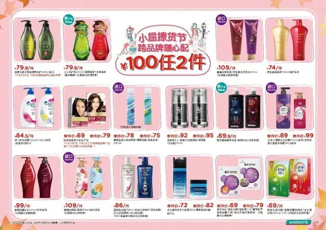 对啦,最近屈臣氏门店还有大尺度优惠活动哦,100元2或3件跨品牌产品任配!