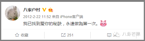 煎饼大叔的第一条微博就是这句话,还配了小兔子表情,略萌!看来无论是做演员还是做老公,煎饼大叔会抱着“初见”的激情与诚意!不会因为时间流逝而变得很“无聊”!你说这虐不虐?!(>﹏<)