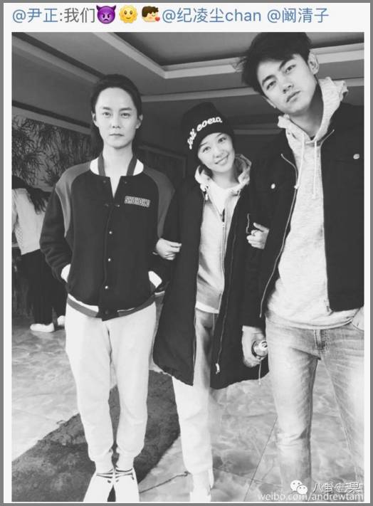 尹正和他们合照,谁是电灯泡一目了然,恋爱的磁场就是这么强大。想起《麻雀》里可怜的的苏三省,尹正真是戏里戏外都被虐得体无完肤啊啊啊