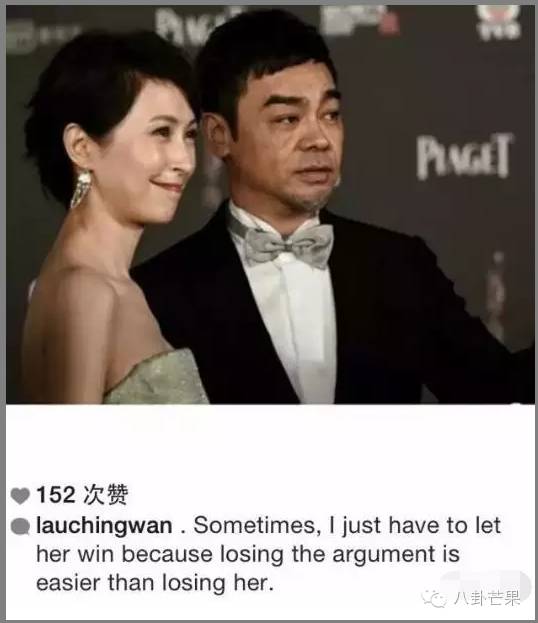 结婚多年,两口子还是会为“菜放不放葱”之类的问题而吵架,刘青云在ins上说:【吵架时我总会让她赢,因为输掉一场争执比输掉她容易多了。】