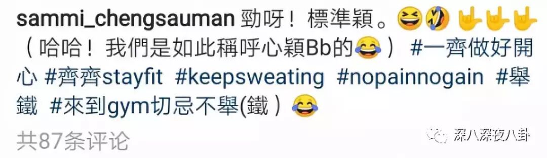 其实更让人觉得吞了蟑螂的事儿,是去年11月郑秀文在ins上大赞心颖bb动作标准,两人在同一个健身房锻炼,黄小姐笑得一脸人畜无害白莲花