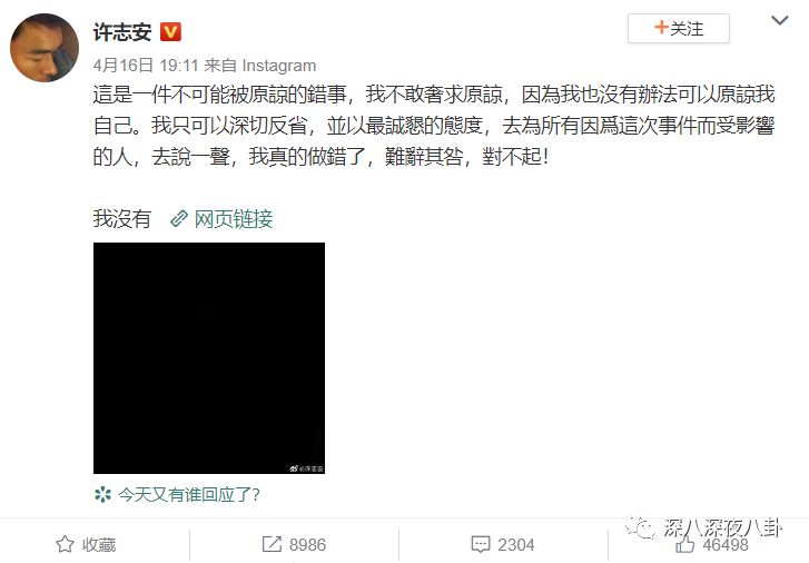 许志安还在ins和微博上同步发了没啥重点的致歉文↓