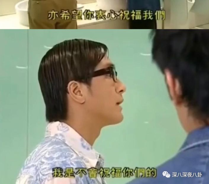 两人在电视剧《肥田囍事》里的台词够应景,“马国明”:我不会祝福你们的