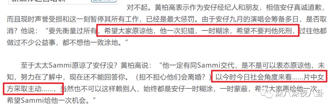 至于许志安的经纪人,满分猪队友,一边说希望大家不要判他死刑,一边私心把锅甩给主动的女方(小主提示:男方主动勾手),给燃烧的舆论再添了一把柴火
