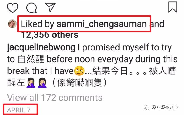 4月7日Sammi还点赞了这位的照片↓