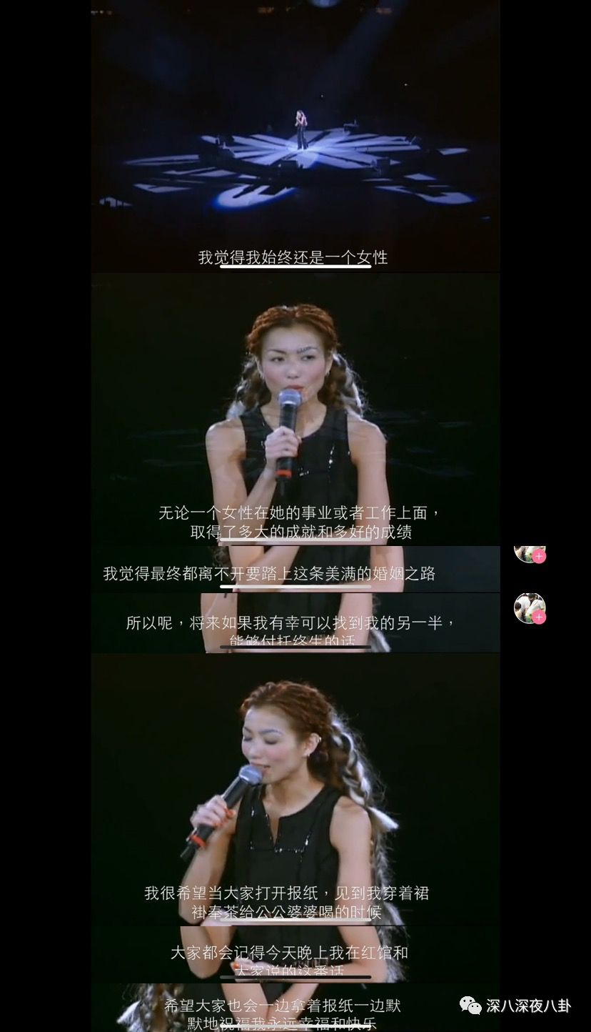 20世纪的尾巴,郑秀文在演唱会上期待粉丝的祝福,“有一天大家在报纸上看到我给公婆奉茶,能拿着报纸默默祝福我永远幸福和快乐”
