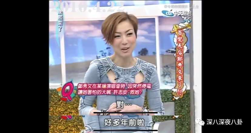 有一次演唱会突然停电,一片漆黑,她在台上下意识喊出,“救救我,许志安!”