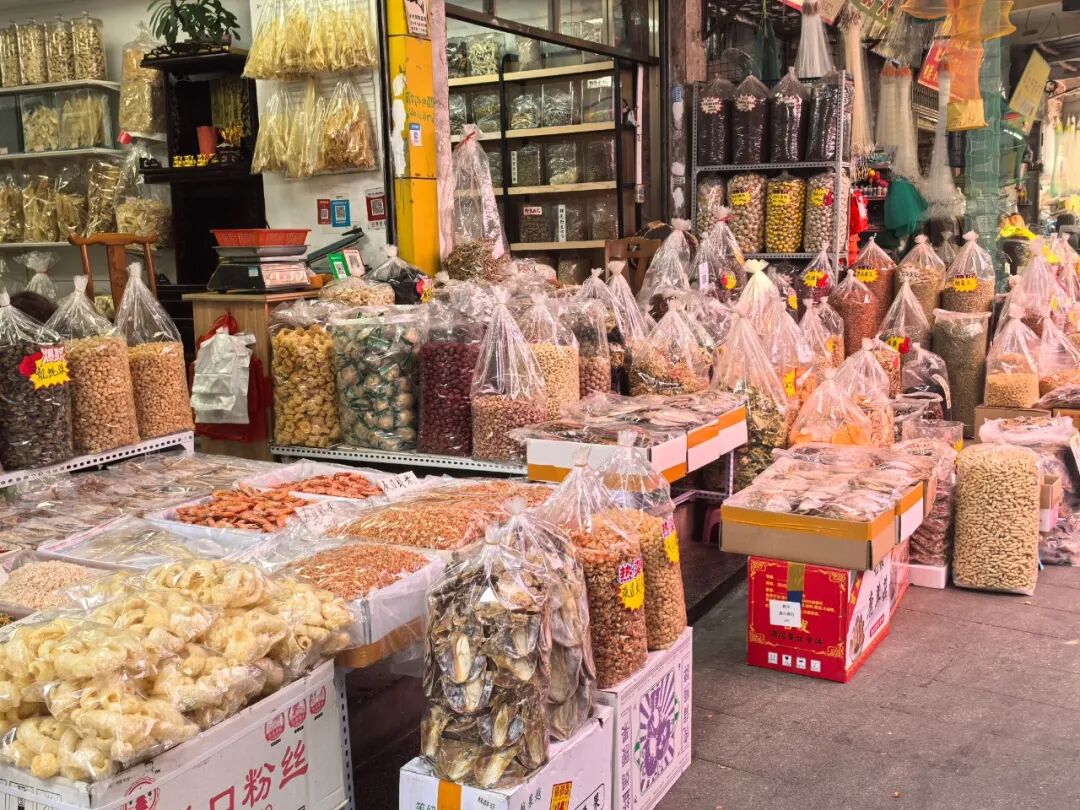 先去韶关步行街走走,这里虽满是商业热闹,可拐进旁侧小巷便换了画风:藏在巷中的“冬菇街”裹着老韶关的回忆,两旁店铺摆满大包小包的干货,板鸭、香芋、腐竹、冬菇、花生饼、红薯干、灵芝、木耳、香芋、马蹄、石斛……是刻在韶关人DNA里的美味,山林众多的韶关大量原生态粤北山珍应有尽有。
