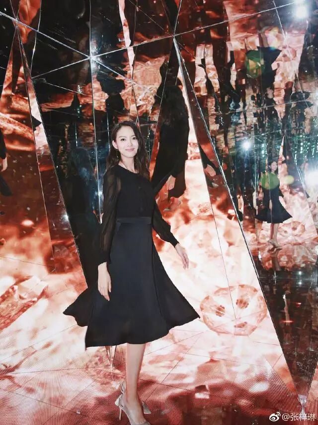 穿一袭黑色的张梓琳优雅大方,上衣的颜色较深,下面裙子的的颜色相比来说比较浅,服装的层次感非常的明显,黑色衬托得张梓琳肤色非常白皙,裙子的腰带很高,让本来就很长的腿显得更加修长,加上一头披肩卷发,女人味十足,端庄优雅。