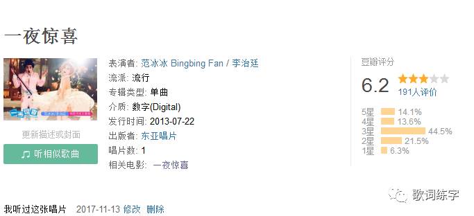 一夜惊喜 -李治廷 范冰冰 歌词练字 港台男星 2017-11-13 22:16:28 236 创作不易,用心坚持,欢迎请BaGua喝几杯爱心咖啡!打赏并支持本文 打赏并删除本文 一夜惊喜 -范冰冰、李治廷 #歌词练字# 范冰冰词,李治廷曲。专辑《治爱》 2014年3月14日 电影 「一夜惊喜」主题曲 创作不易,用心坚持,欢迎请BaGua喝几杯爱心咖啡!打赏并支持本文 打赏并删除本文 感谢您的支持鼓励,我会继续努力的!文章地址:用户邮箱:打赏金额:USDT 请输入数字点击”去打赏“,即可进行打赏支持本文章哦 李治廷 About the Author 歌词练字 功能介绍:坚持歌词练字打卡贴 微博:懒惰粽子。 微博话题:歌词练字。 关注粉请留下你喜欢的歌,写给你们! Related Posts 一夜惊喜 -李治廷 范冰冰 2017-11-13 22:16:28 发表评论