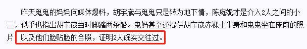 为了证明胡宇崴确实跟鬼鬼交往过,鬼鬼妈还晒出了两人的亲密贴脸合照。