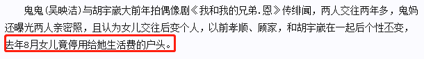 而爆发此事的原因,则是鬼鬼妈认为鬼鬼和胡宇崴在一起之后,变得不听话了,还停了每个月打钱给她的户头。