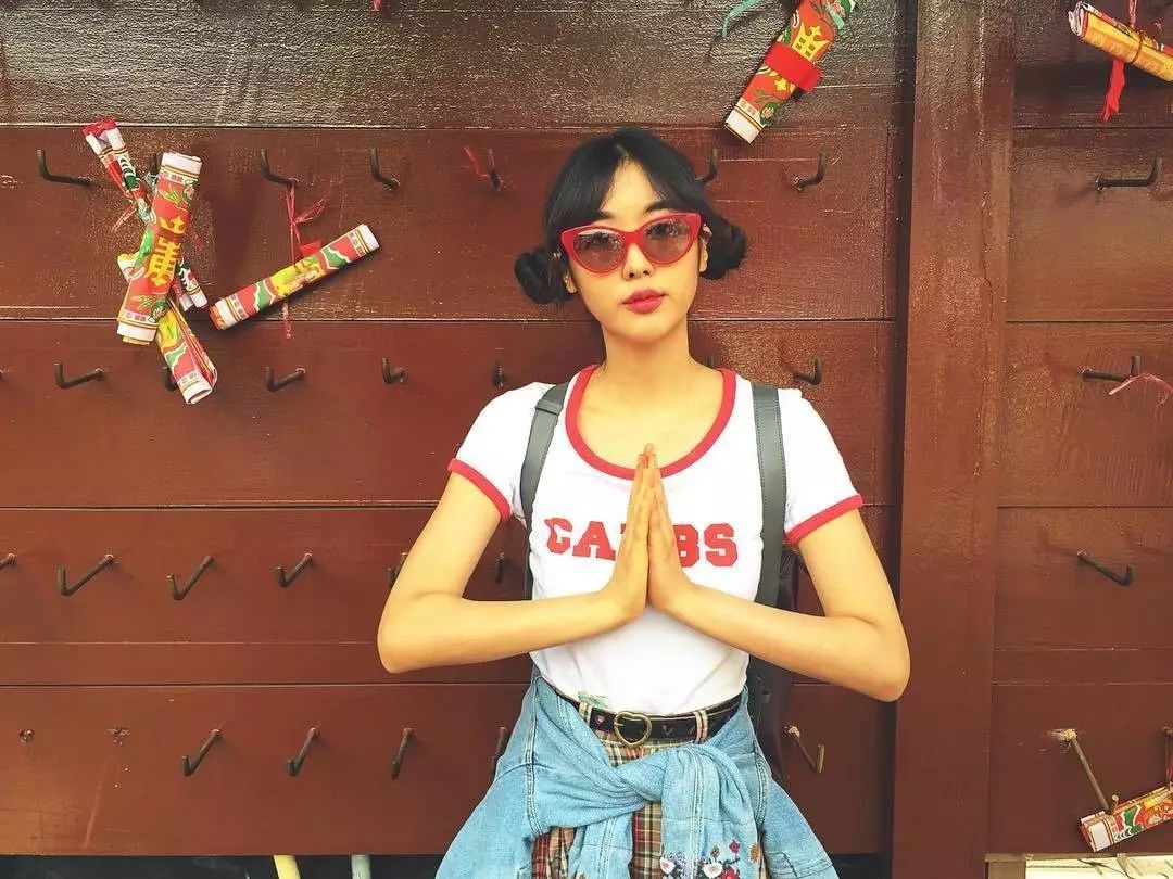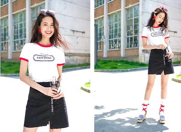 可以学学宋茜,上身穿白色字母印花Tee,下身无论是搭配黑色阔腿裤还是黑色短裤都实力显瘦,干净利落的搭配连西姐都被帅一脸。