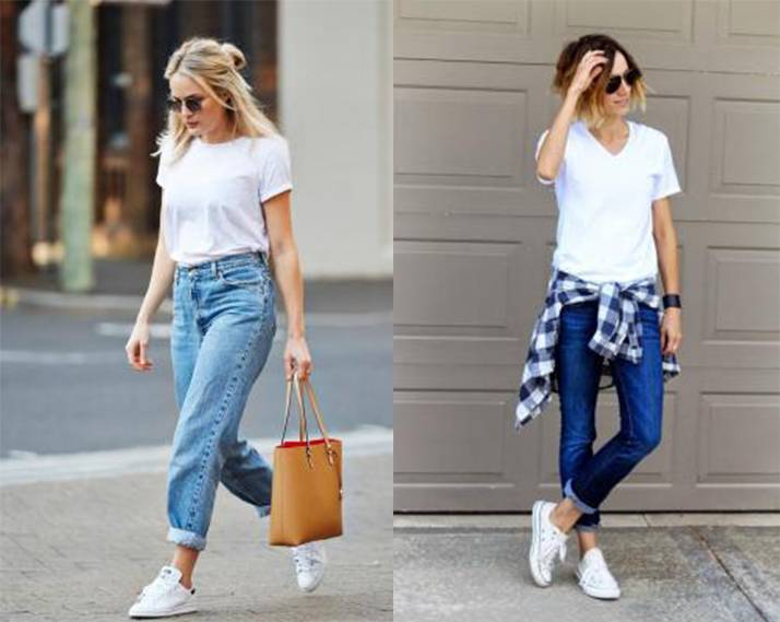 白Tee+蓝色牛仔裤+小白鞋是一个看不厌的经典搭配,全身清爽利落没有丝毫累赘,还能让整体造型看起来更加简单、高级。