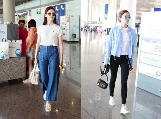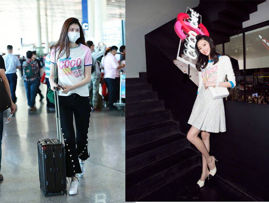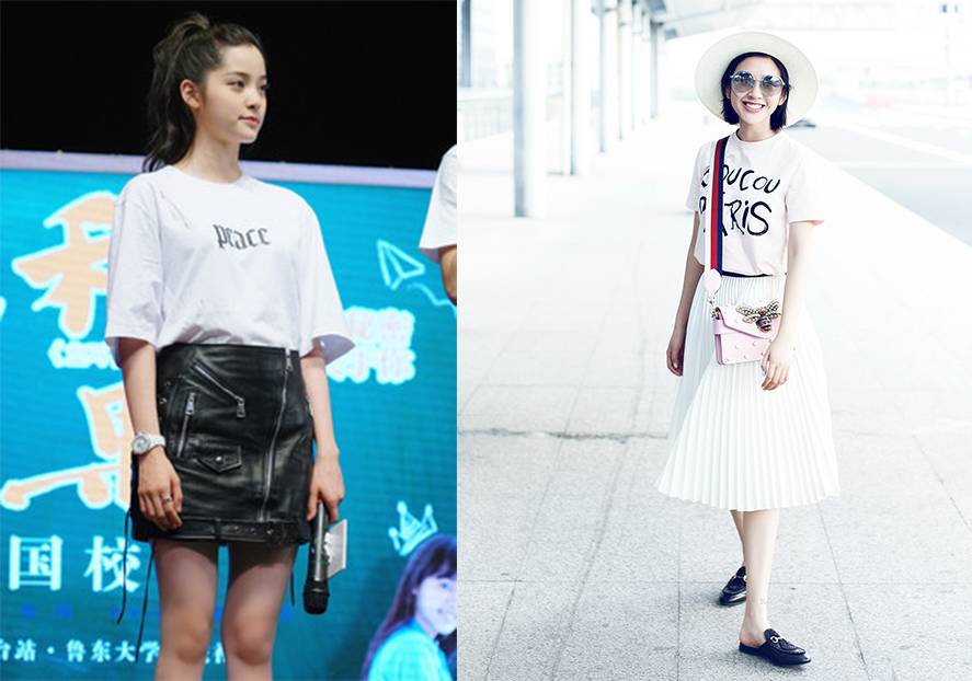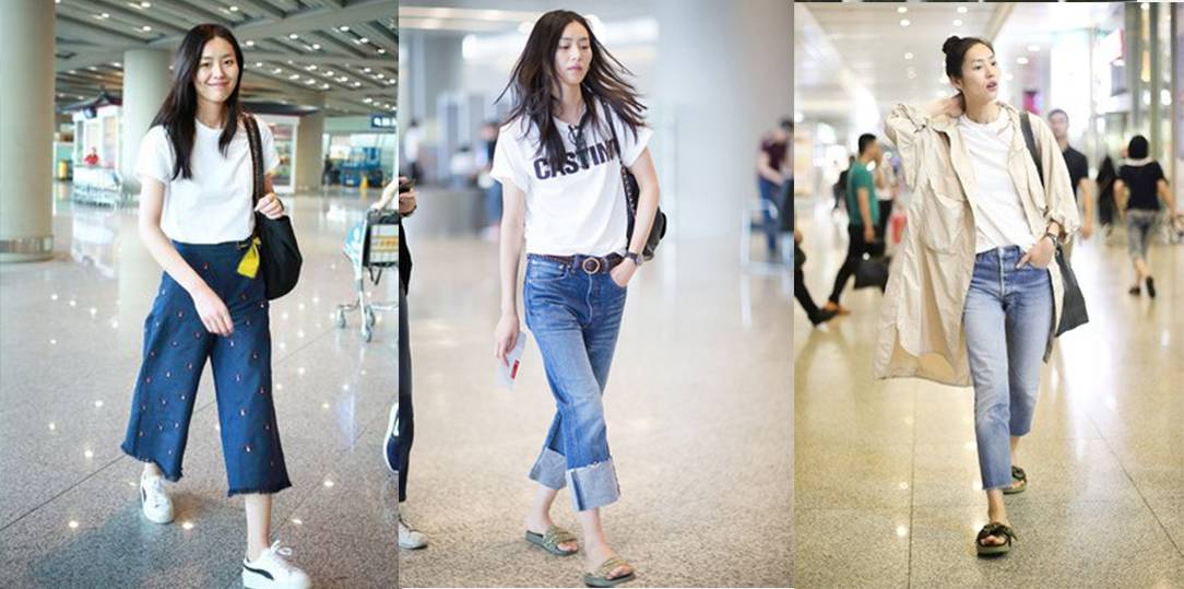 江疏影也是白Tee的迷妹,就连私服和机场街拍都是以白Tee搭配look居多。