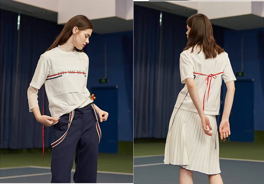 这件白Tee真的hin有设计感,纯棉的材质穿起来透气又舒服,胸前的字母上还加了一条红色丝带的点缀,看起来就写错了字母用红色笔划掉了一样。
