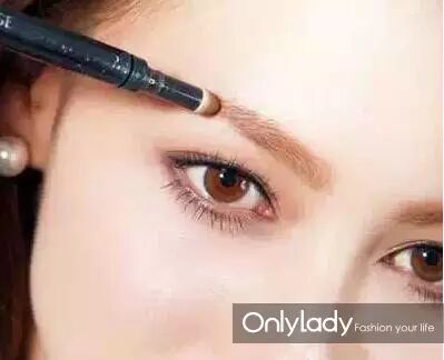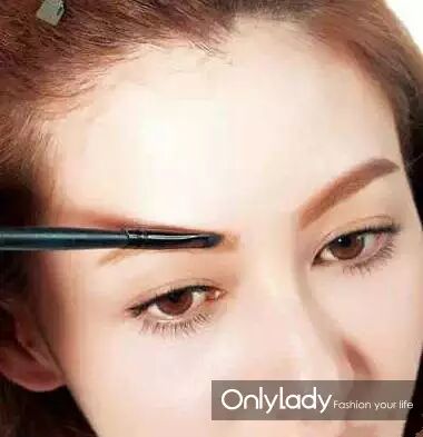 眉刷蘸取少量眉粉,从眉头位置向后带,扫出大致的眉形轮廓。