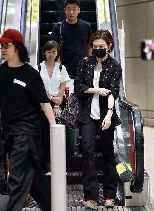 关之琳穿的是那种黑色的衣服,就比较的简单一些,也很朴素的。这样看起来她确实是有点显老了,而且脸上也有了皱纹,就连白头发都有了呢。