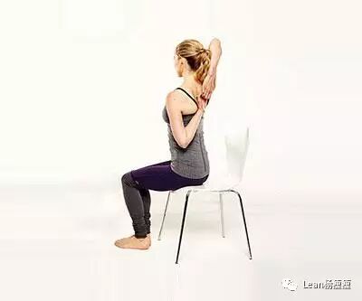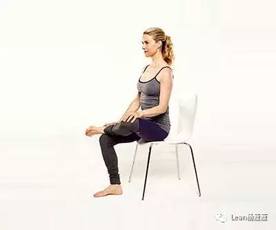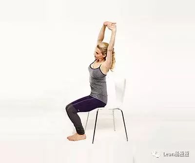 坐在椅子前侧,双手置于臀部两侧下压,胳膊用力使屁股离开椅子。使用腹部肌肤的力量,注意肩膀下压不要耸肩。保持这个姿势3-5次呼吸,回到起始位置,重复2遍。