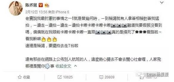 这女明星怎么都跟气球似的,胖的快瘦的也快!性格直爽的陈乔恩,自然也不乐意了~~还发了篇微博怒斥这些机场蹲拍的狗仔。