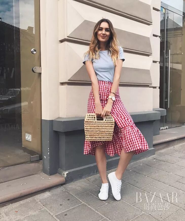 颜色鲜艳的格子自带盈盈生机,与春天再适合不过啦~ 搭配一双简单的小白鞋,怎么看都是不到18的少女!