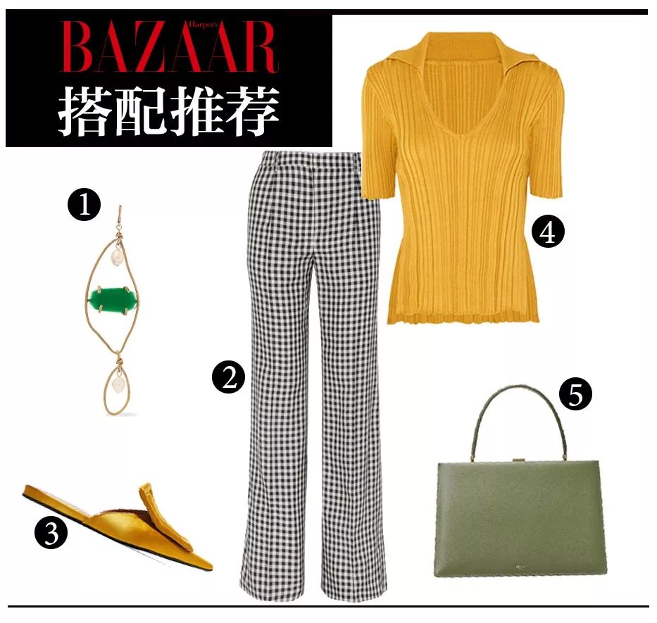 如果你是黄皮,就最好选用黑白格或红白格等不会显黑的颜色。配饰上增加一些金属元素,更可以提升皮肤在春日里的质感~