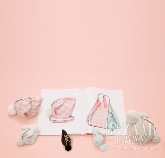 Loewe也眼光毒辣地在“兔子”手袋上加进了粉白格纹的“桌布纹”,让之前纯色的“兔子”一下子又萌了不少!