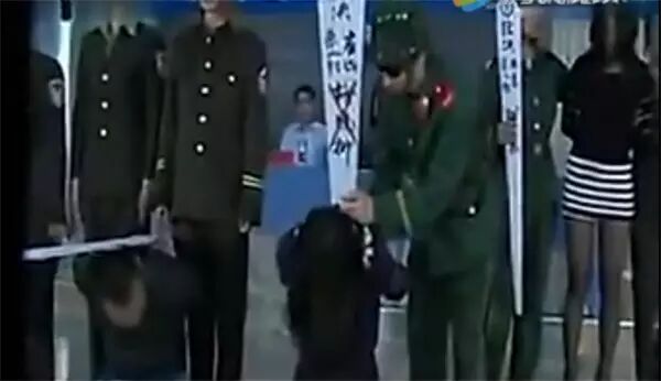 罪名宣判完毕,一位拿着喇叭的姐儿们高喊:“验明正身,执行枪决。”