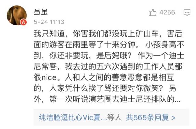 24日早上,演员黄小蕾连发两条微博要投诉迪士尼工作人员,称其在自己带着孩子去游玩的时候,“全程没有笑容,工作态度冷漠无情,故意刁难,不诚实!反复刁难身高符合标准的孩子…”