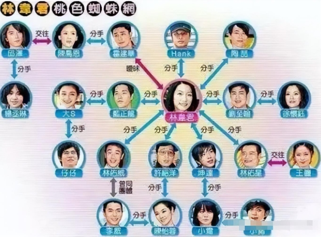 在台湾演艺圈有这样一位女星,她凭借《麻辣鲜师》走红,却因频繁更换男友而声名狼藉。她就是有"台湾偶像剧天后"之称的林韦君,29年演艺生涯中先后交往过14位男友,被网友戏称为"劈腿始祖"。