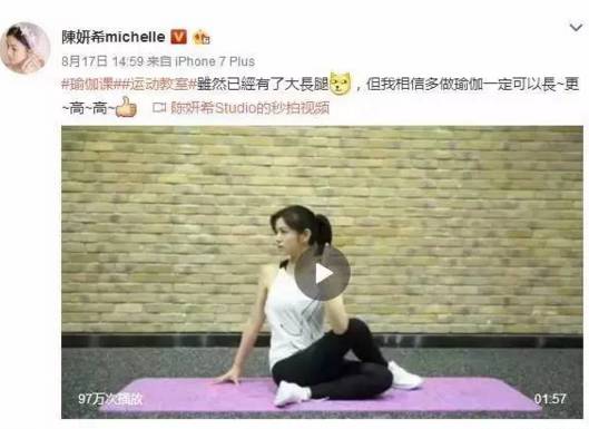 自己练瑜伽的视频,并配文: