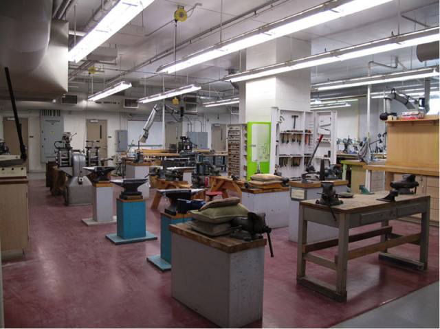 BFA的学生和MFA的学生有不同的工作室,这些工作室中也配备焊台,水槽,工作台等基本设备。