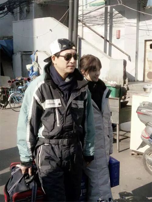 郑爽和爸爸逛街散步