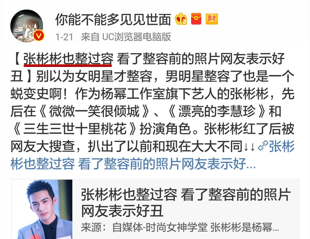 然而,刚上热搜没几天,微博里关于张彬彬整容的传闻就层出不穷了...