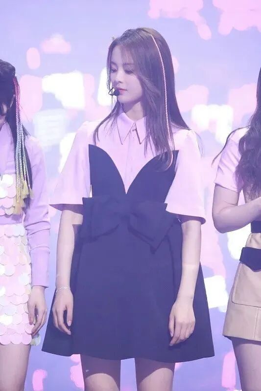 粉色真是个很神奇的颜色,无论什么颜色,搭配上粉色,都能打造出甜美感。上身采用粉色打造出衬衫的感觉。而下半身则采用了宽松的黑色半身裙,在腰间采用蝴蝶结加兔耳造型进行装饰,增加整体的甜美感,更显少女气息。