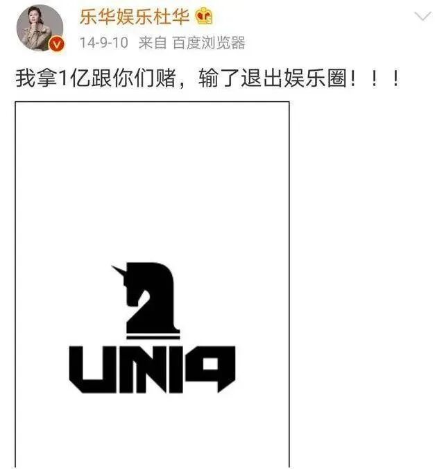 UNIQ出道前,杜华曾在社交平台放话,“我拿一个亿跟你们赌,输了就退出娱乐圈!!!”
