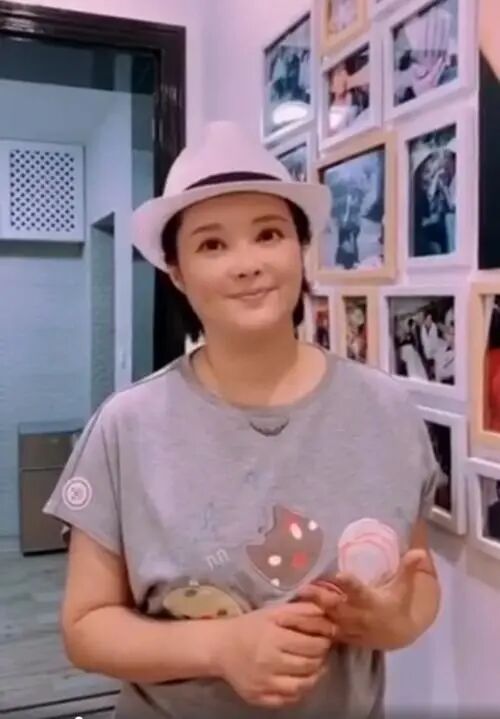 而且脸看起来真的是圆了很多,就会给人一种发福的状态,真的是胖了很多。她穿的是那种灰色的短袖,就非常的简单了,素颜看起来就比较接地气呀。