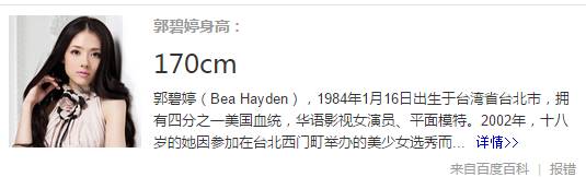 查查看,郭碧婷基本符合上述女星的所有特征。比如身高啦,